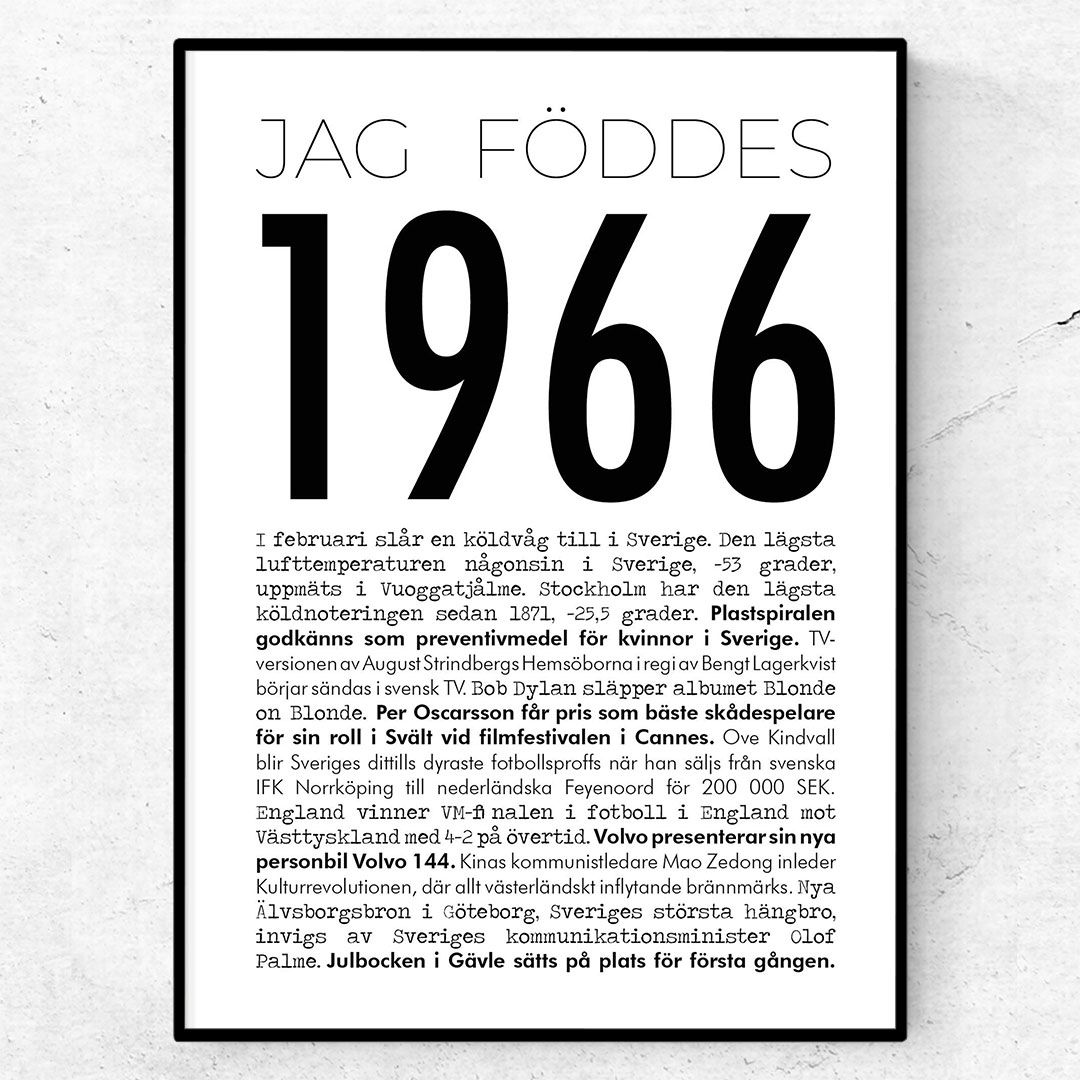 Du hittar alla våra årtal här. Köp denna fina 1966-poster ur den moderna kollektionen av årtalsposters och få den levererad inom några dagar. Postern trycks på matt bestruket kvalitetspapper i 180g.