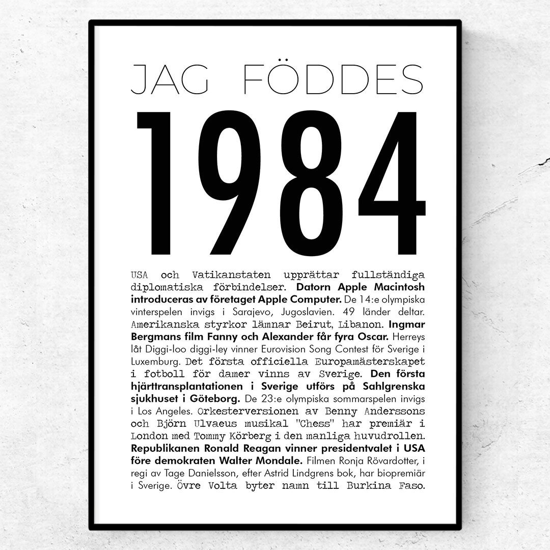 Du hittar alla våra årtal här. Köp denna fina 1984-poster ur den moderna kollektionen av årtalsposters och få den levererad inom några dagar. Postern trycks på matt bestruket kvalitetspapper i 180g.