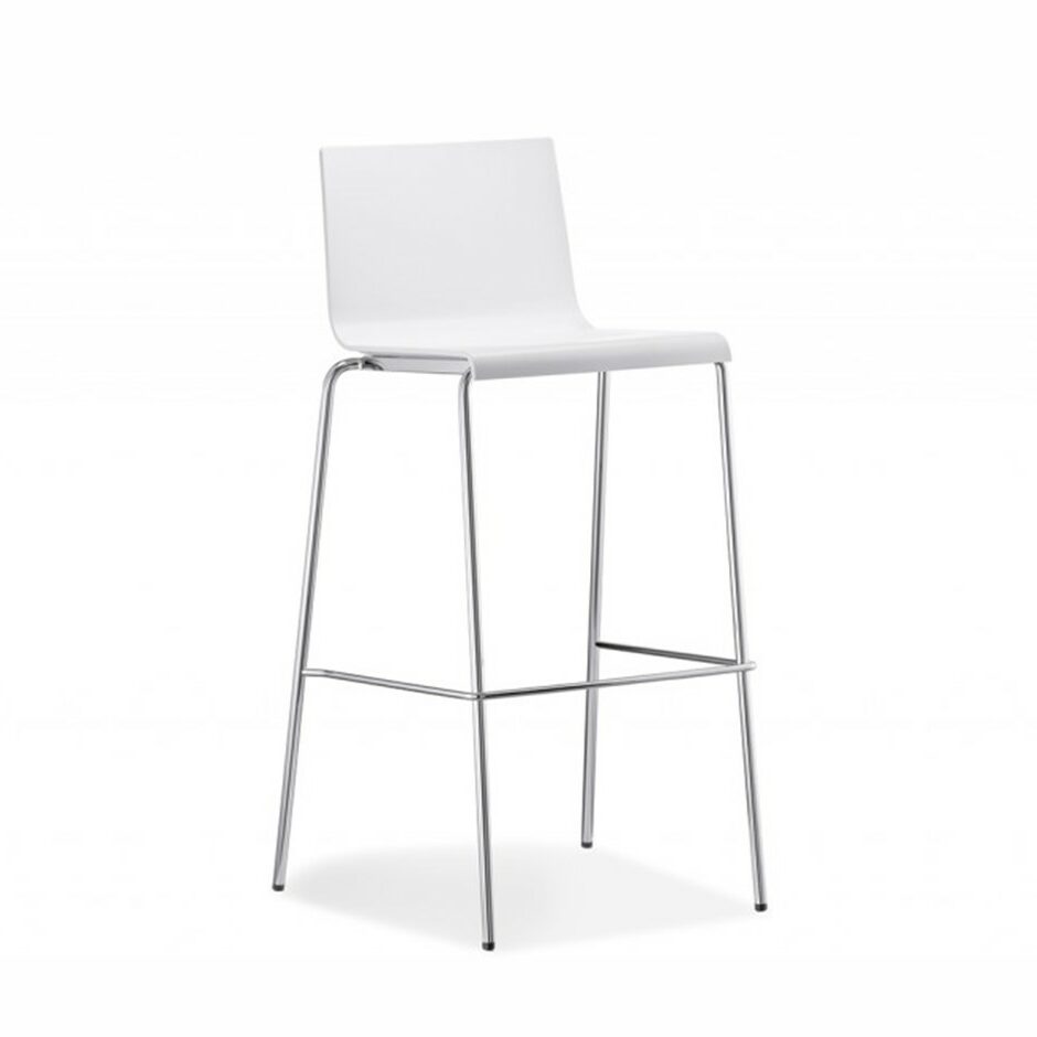 Vit barstol med kromben från Pedrali i modellen Kuadra.