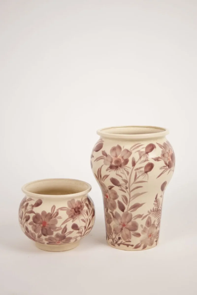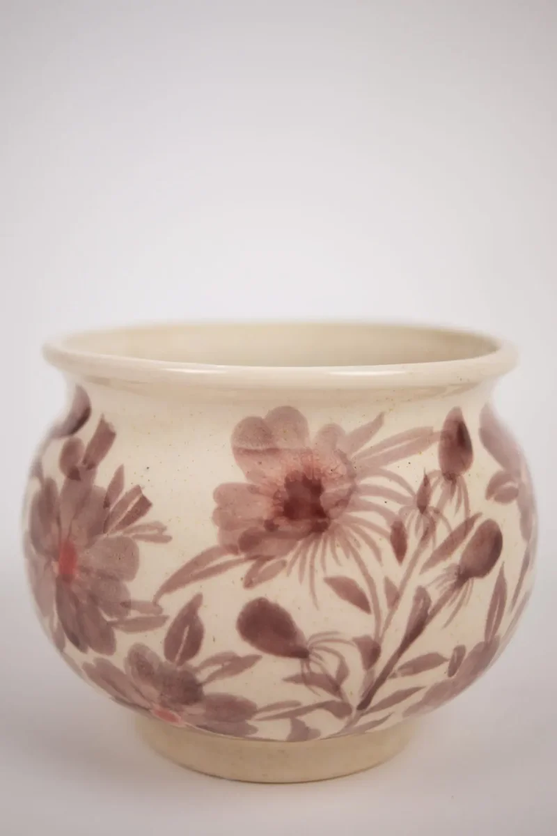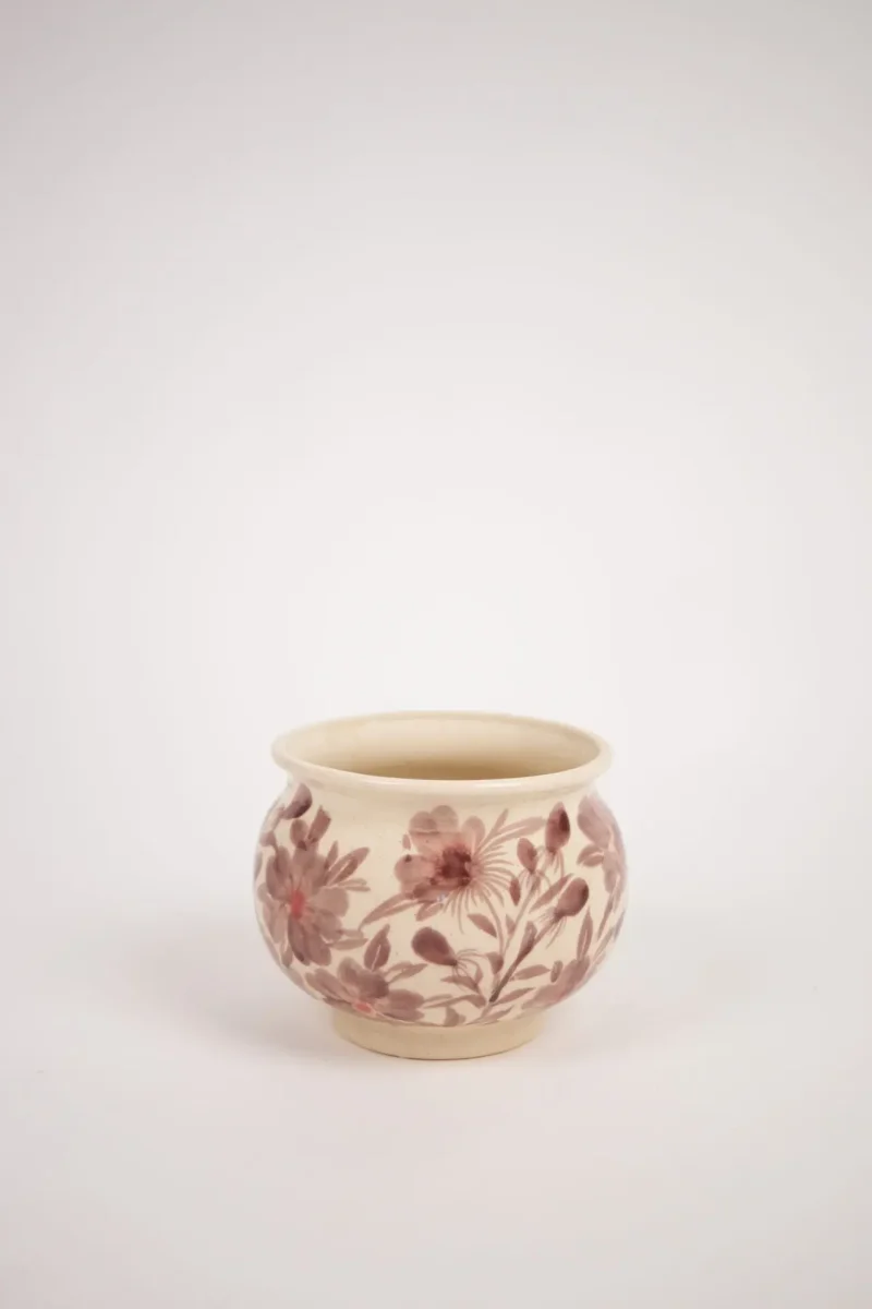 Bellis förmedlar en tydlig känsla av hantverk där det målade blomstermönstret skapar ett levande och romantiskt uttryck. Placera krukan som ett dekorativt objekt på ett sidobord, i ett fönster med en krukväxt i eller på bordet som en del av en dukning. Eftersom krukan är handmålad kan färg och form variera, vilket gör varje exemplar unikt. Produkten är tillverkad i keramik och är därför inte vattentålig.