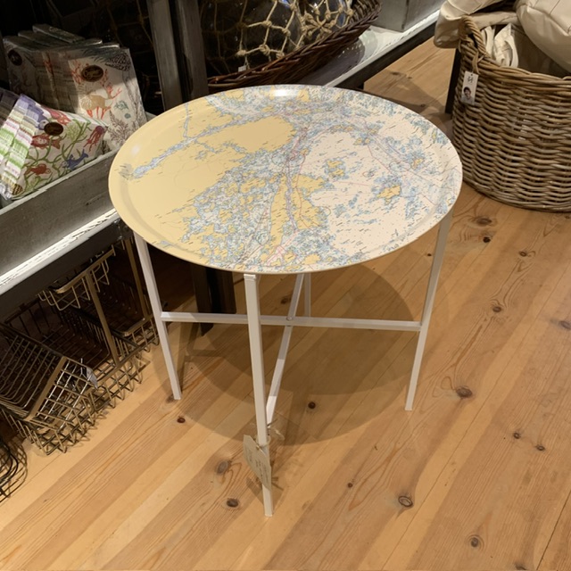 Hoppfällbart vitt benstativ i stål. Gör ett brickbord med SundbodenDesign Sjökortsbricka 45cm i diameter.