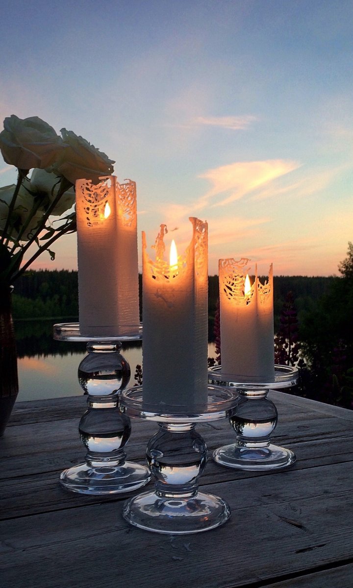 - Tänk på att det är “levande” ljus! Det vill säga att ljusen inte ska lämnas ur synhåll och på ett eldfast underlag. Med fördel på ett anpassat ljusfat med kant, som kan samla upp stearin som eventuellt rinner och kan förstöra annat underlag.