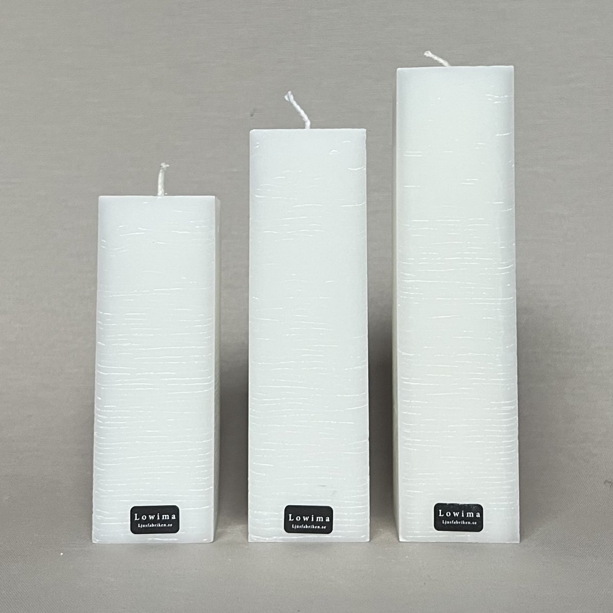 Vita fyrkantiga blockljus av 100% stearin med obehandlad bomullsveke. Ljusen är 44×44 mm och finns i höjderna 125–200 mm. Önskas andra längder på ljusen går de bra att Kontakta oss Ljusen kan, som alla våra stearinljus få ett så kallat spindelnätsmönster och blir unikt för varje ljus. Läs gärna våra ”Eldningstips”