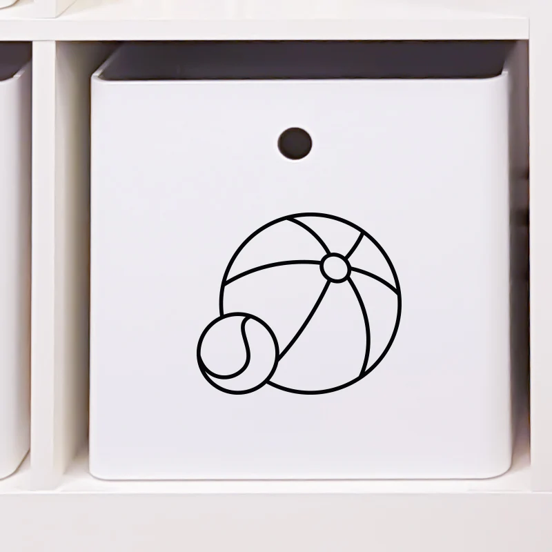 Bollar som dekor till leksakslådan. Märk lådan med bollar med en tydlig symbol så att både barn och vuxna vet var saker och ting ska vara! Märkningen på lådan är både praktisk och snygg och gör barnrummet, lekrummet eller förrådet mer personligt.