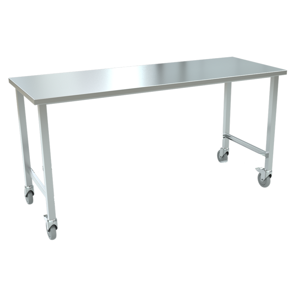 BORD, rostfritt arbetsbord på hjul 200×90 cm
