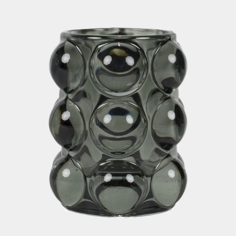 Stämningsfull ljuskopp med dekorativa bubblor som reflekterar ljuset. Finns i två storlekar och flera färger.