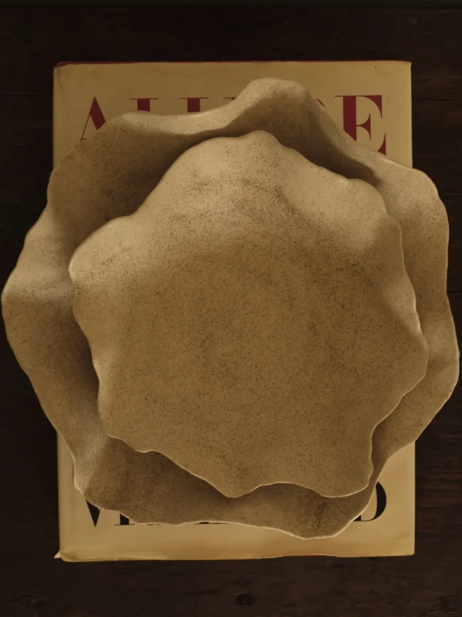 Claire-faten är unika och handgjorda, med ett rått men elegant uttryck – vissa tycker de liknar vackra ostronskal. Att duka med dem ger en annorlunda och fantasifull dukning. Servera en härlig sallad eller pasta, och du får garanterat kommentarer om de vackra faten.