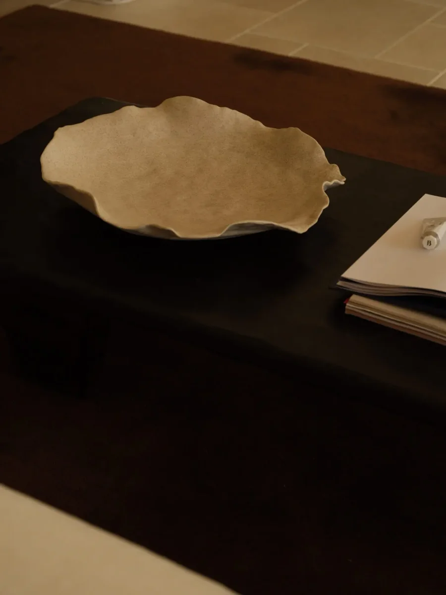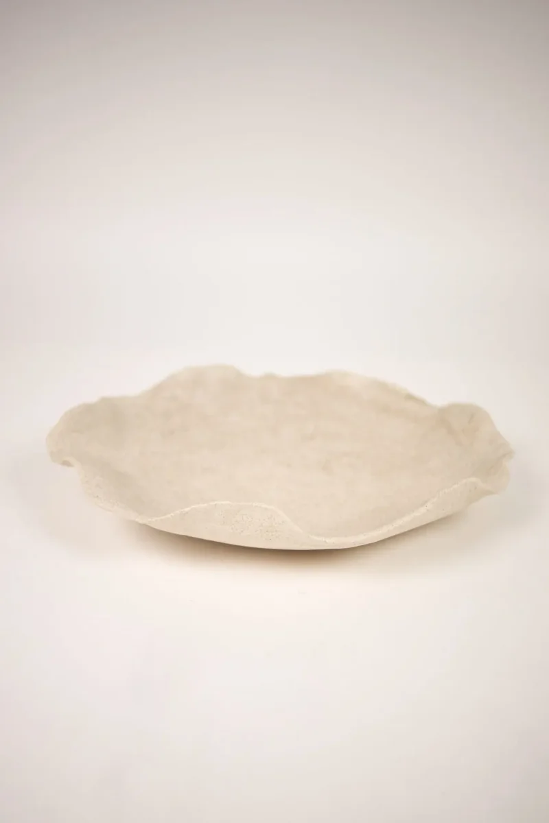 Claire-faten är unika och handgjorda, med ett rått men elegant uttryck – vissa tycker de liknar vackra ostronskal. Att duka med dem ger en annorlunda och fantasifull dukning. Servera en härlig sallad eller pasta, och du får garanterat kommentarer om de vackra faten.