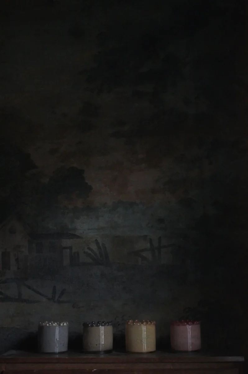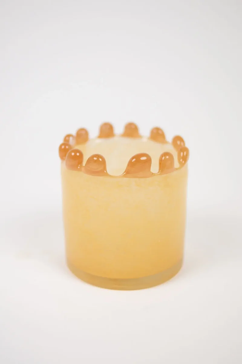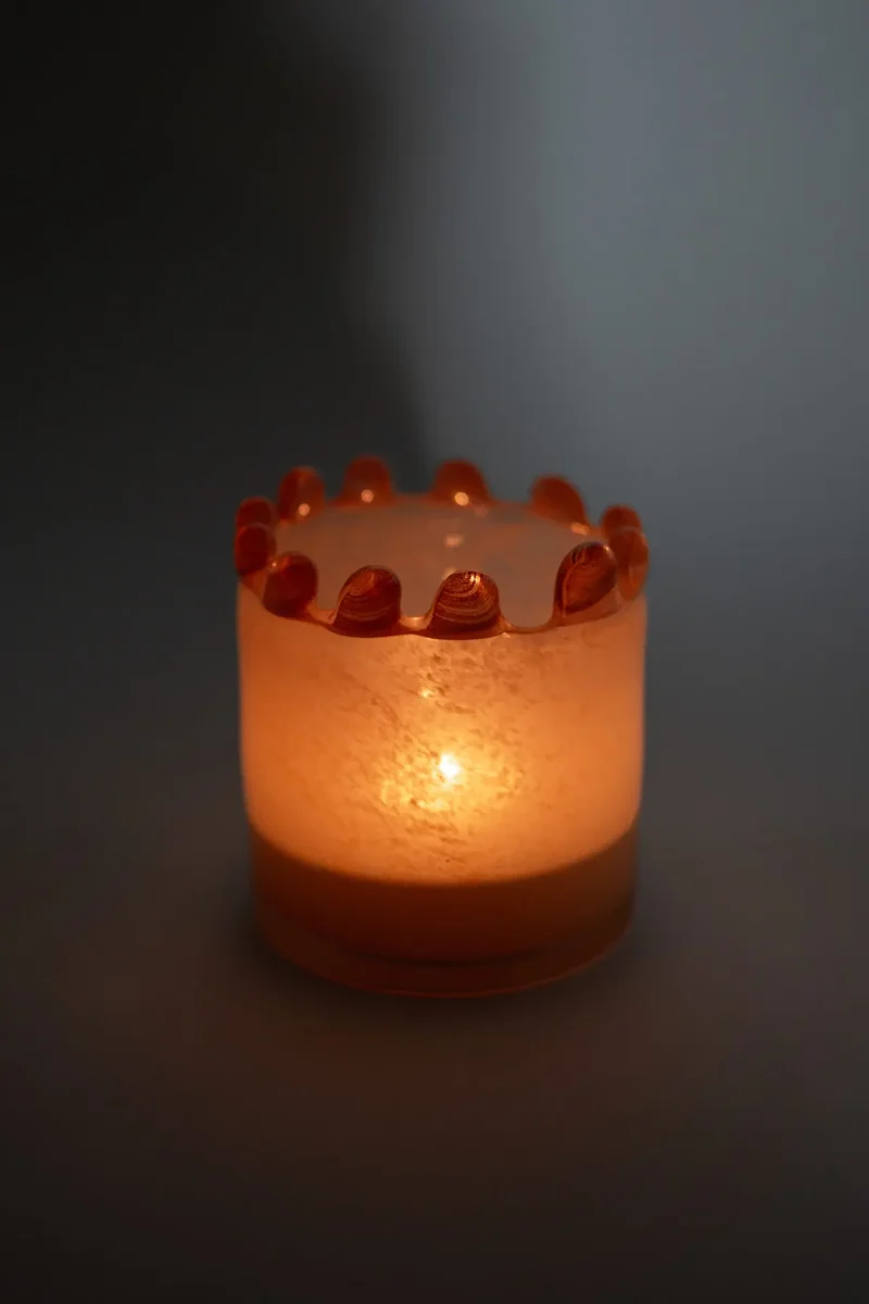 En lyxig glaslykta med dekorativa prickar längs kanten, som ger en lekfull och glad känsla.