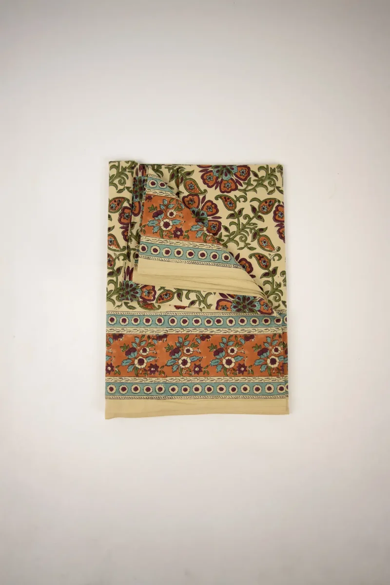 Blocktrycksteknik är en traditionell metod där mönster skapas på textilier genom att trycka designen med ett handskuret träblock. I denna process appliceras varje design noggrant för hand, vilket gör att varje tryck blir unikt. Den handgjorda tekniken ger varje textil en personlig karaktär, där varje exemplar bär på sin egen historia och charm.