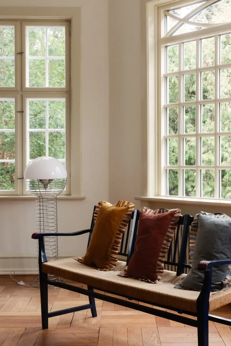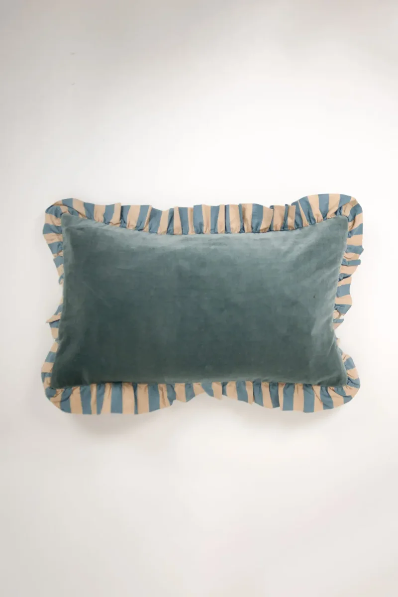 Kuddfodral i 100% bomull, med en charmig randig volang som ger en lekfull touch.