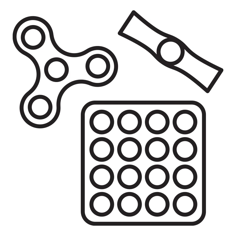 Fidget toys som dekor till leksakslådan eller förvaringsboxen. Märk lådan där fidget spinners, pop it leksaker, monkey noodles, squishies, simple dimples osv, ska förvaras med en tydlig symbol, så ökar chanserna att hålla ordning!