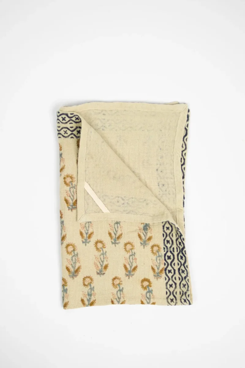 Blocktrycksteknik är en traditionell metod där mönster skapas på textilier genom att trycka designen med ett handskuret träblock. I denna process appliceras varje design noggrant för hand, vilket gör att varje tryck blir unikt. Den handgjorda tekniken ger varje textil en personlig karaktär, där varje exemplar bär på sin egen historia och charm.