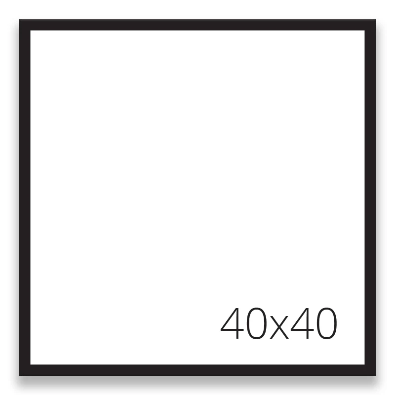 Denna ram är anpassad för motiv med måtten 40 x 40 cm. Ramens yttermått är 41,6 x 41,6 cm.