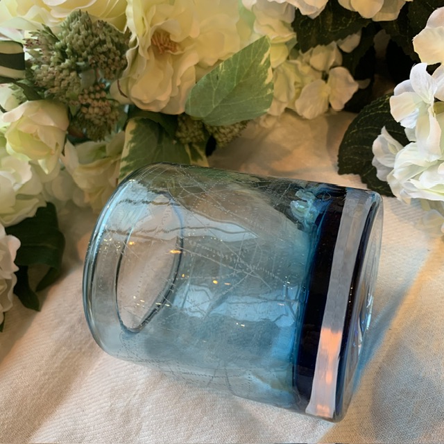 Handgjord glasvas eller ljuslykta handblåst i Sverige av Jo Andersson. Vasen har repor /scratches på hela glasytan.