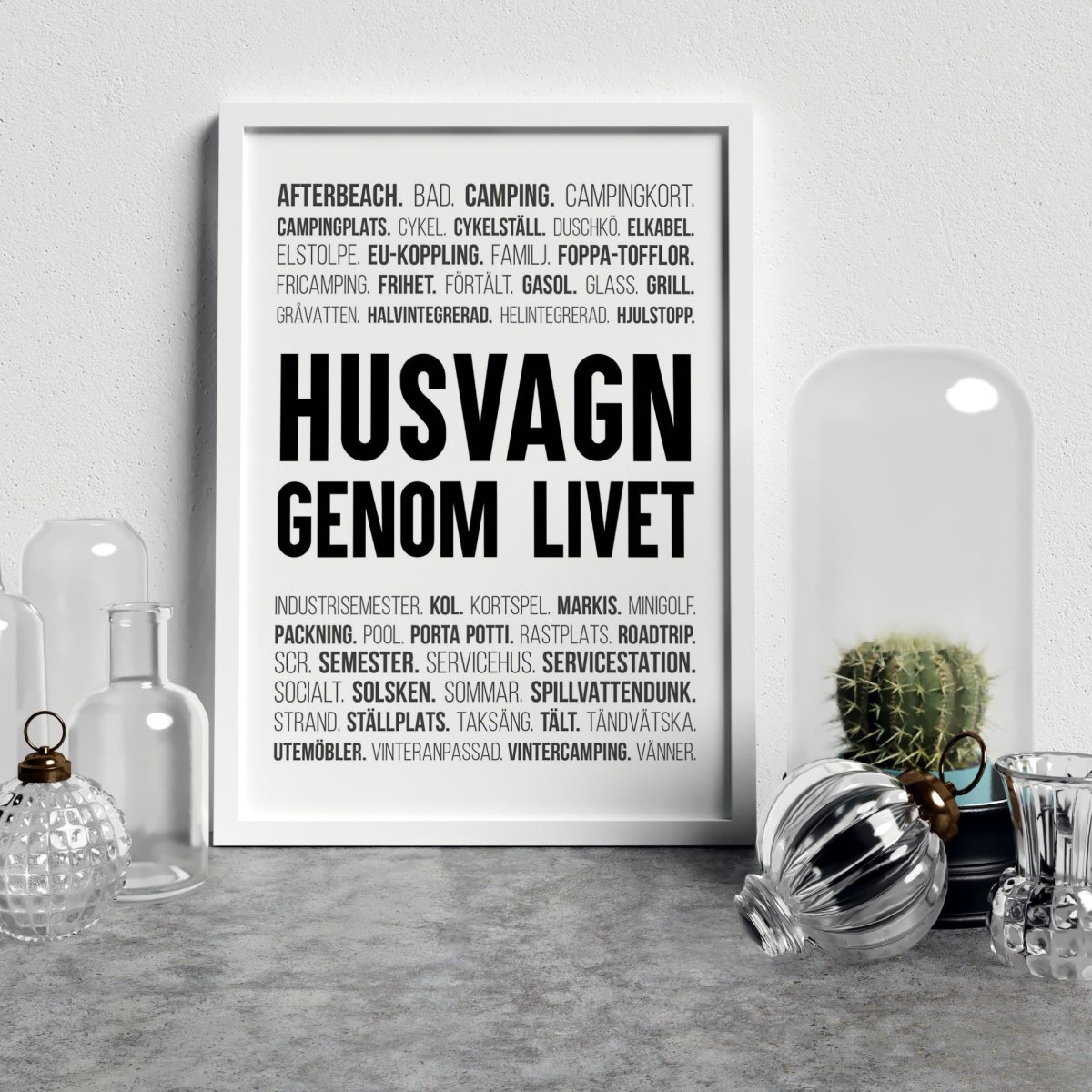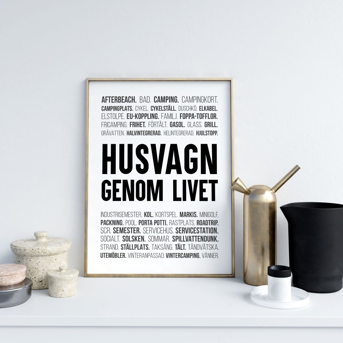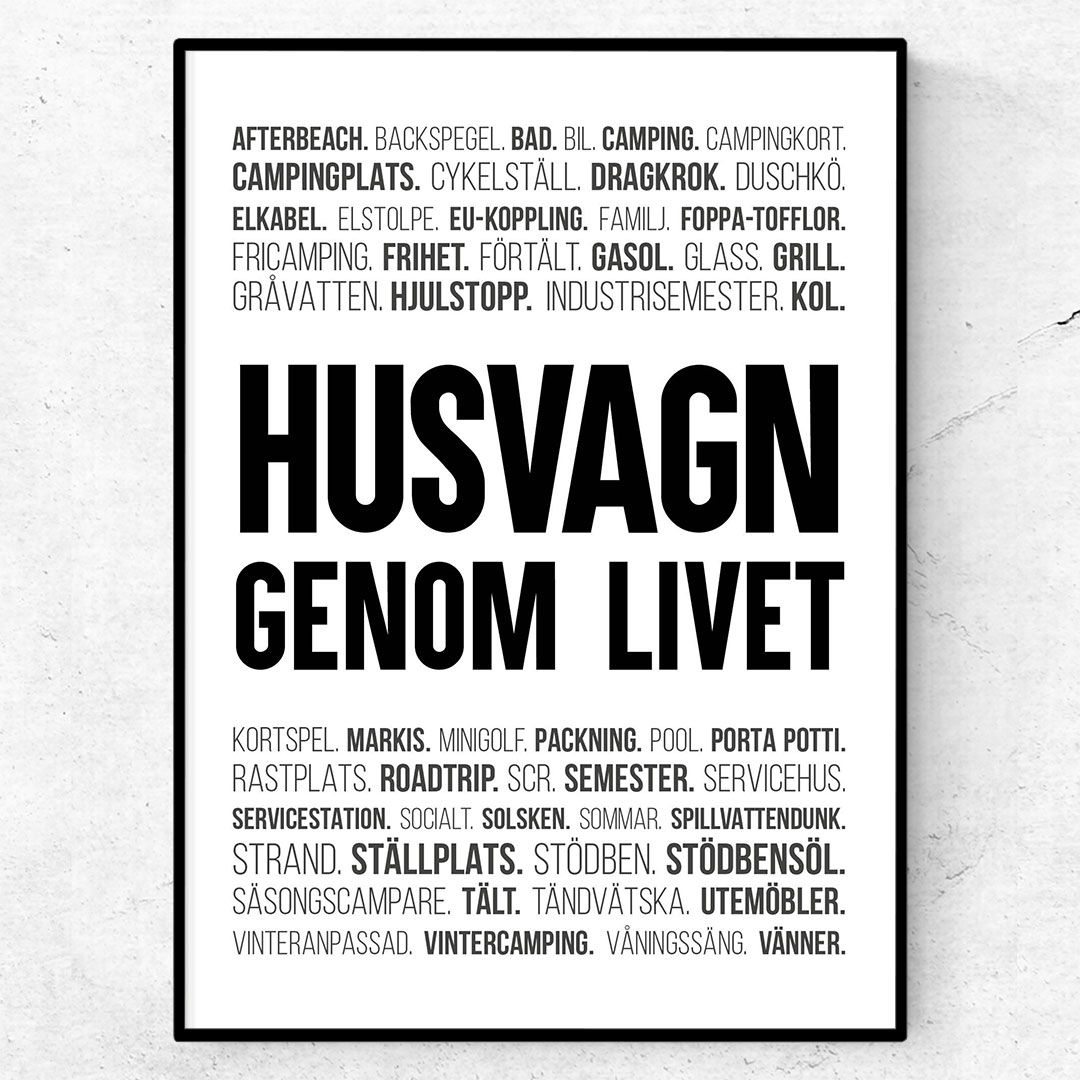 Älskar du att spendera somrarna på campingplatser ut med våra vackra kuster eller kanske på Böda strand? Oavsett var din familj ställer upp husvagnen på sommaren så har vi en poster för alla er som älskar campinglivet. Postern består av rubriken ”Husvagn genom livet” och är omgärdad av ord och termer som kommer från campingens värld. Så tanka bilen, rigga husvagnen och kör mot er favoritplats så hoppas jag vi ses på de soliga campingplatserna i sommar.