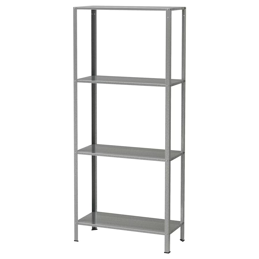 Hylla i försinkat stål. Höjd: 140 cm Bredd 60 cm Djup: 27 cm Maxbelastning 25kg