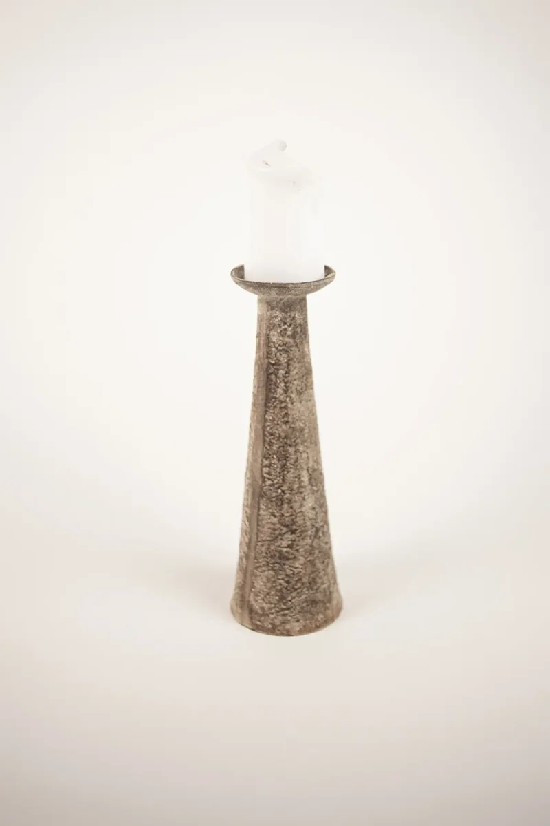 Rustik ljusstake med unik, varierad finish – passar för blockljus.