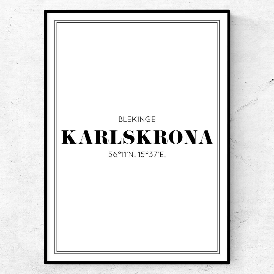 Långt nere i de södra landskapen av vårt land ligger det vackra Blekinge, och inte minst staden Karlskrona. Den här postern är en hyllning till Karlskrona och kanske till allt som staden betyder för dig? Denna Karlskrona-poster köper du på textart.se och får den levererad hem på ett par dagar. Letar du efter någon annan stad? Då kan du kolla på övriga posters och alster här.