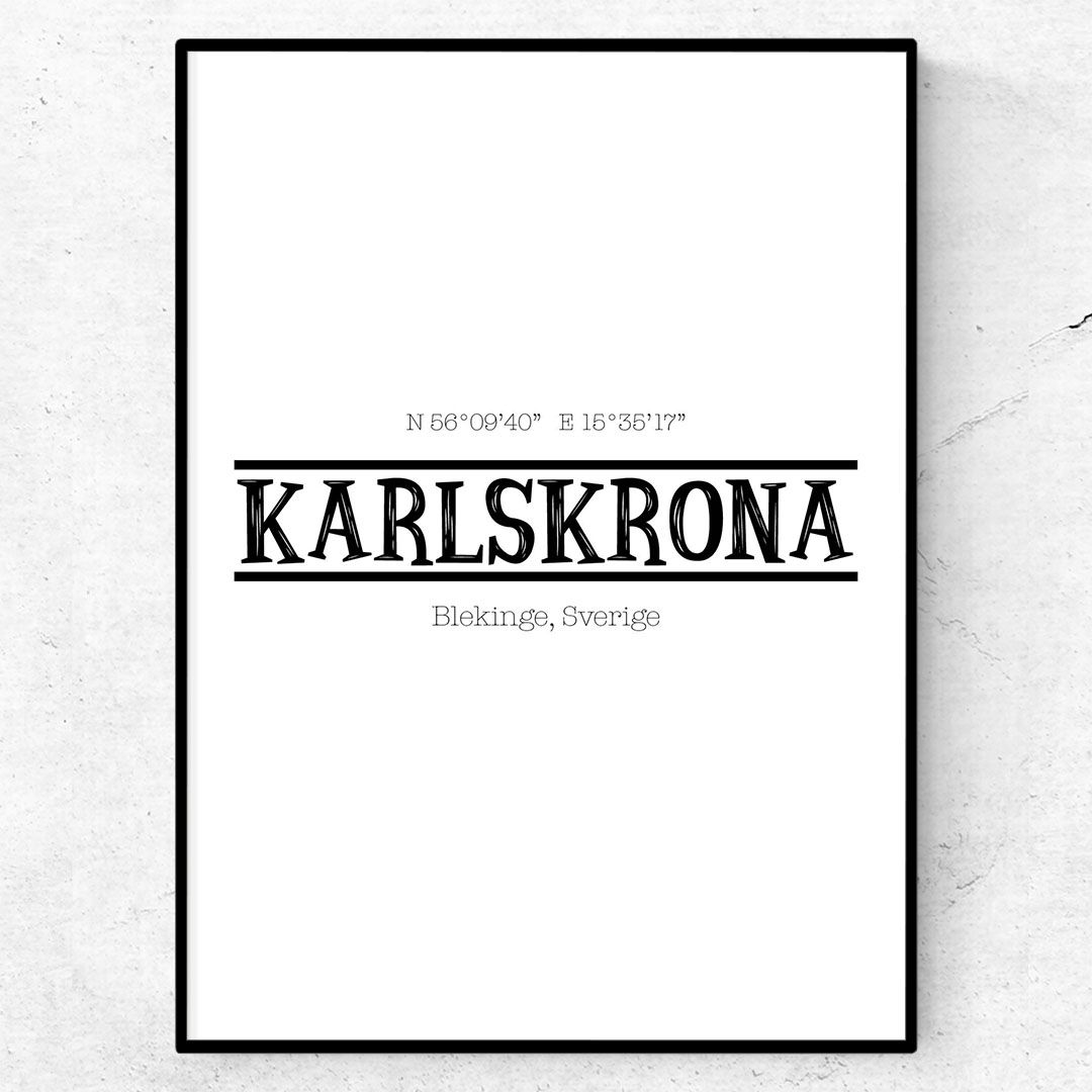 Karlskrona poster Retro. Det här är en snygg stadsposter ur kollektionen Karlskrona. En snygg och traditionell stadsposter med vackra Karlskrona, landskap och koordinaterna till Karlskrona.