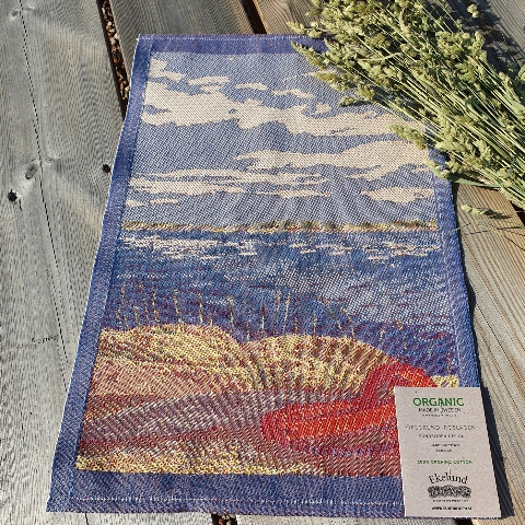 Kökshandduk ”Öregrund, Roslagen”, Sundboden Design. Vi fotograferar motiv från Roslagen som sedan vävs av Ekelund Linneväveri på handduk av Organic Cotton.