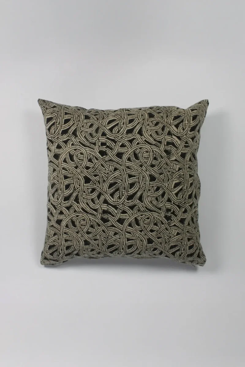 Dubbelsidigt kuddfodral i 100% linne med en vacker, mönstrad framsida och en stilren, randig baksida.