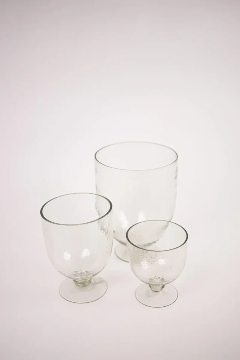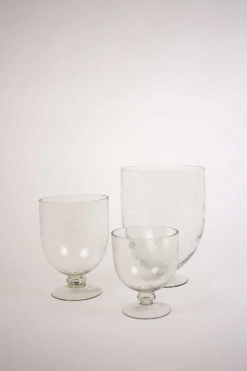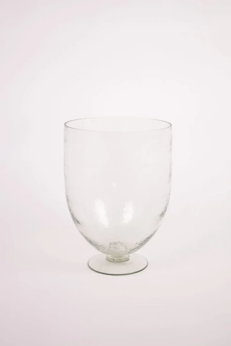 Stormlykta i hamrat glas som passar lika bra att använda som ljusstake som vas.