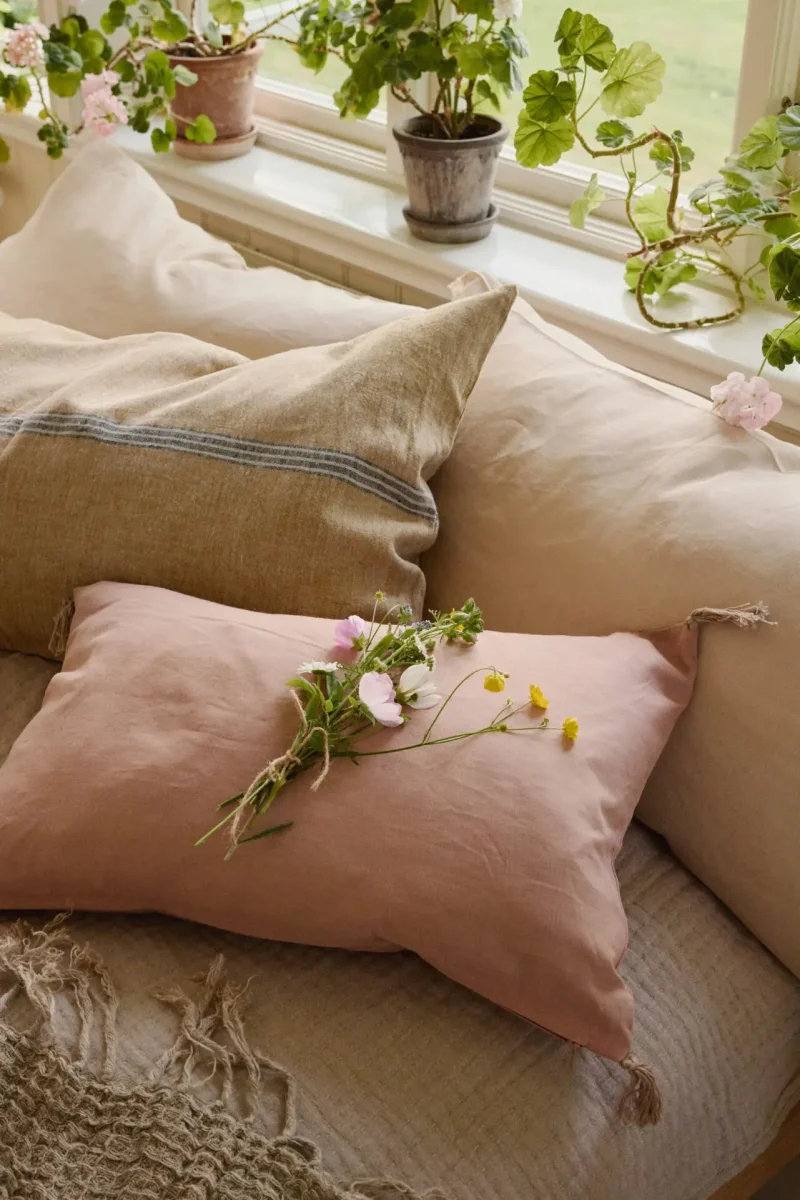 Kuddfodral i bomull och linne.