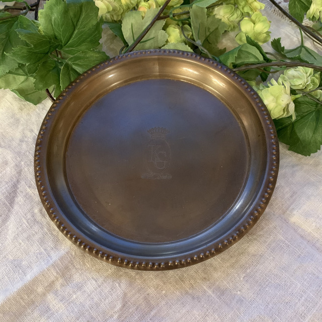 Stort ljusfat i en mörk brun kopparaktig färg. Även bra som exempelvis fat till krukor. Diskret företagslogga mitten av fatet.