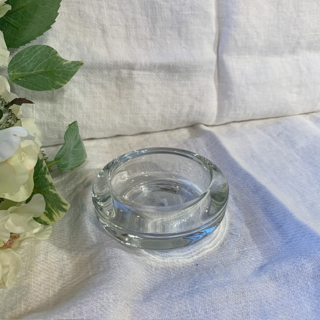 Nätt liten ljushållare i glas. För stora värmeljus i kopp, som är 5,5cm i diameter.