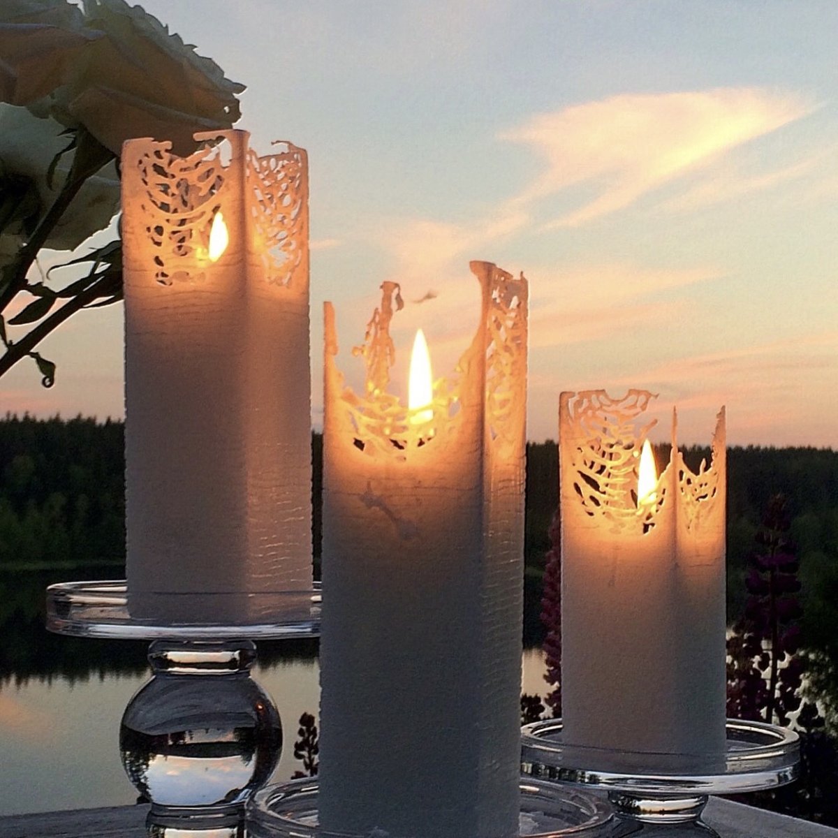 - Placera inte ljusen för nära varandra eller andra värmekällor. Ej heller bredvid lättantändliga material!