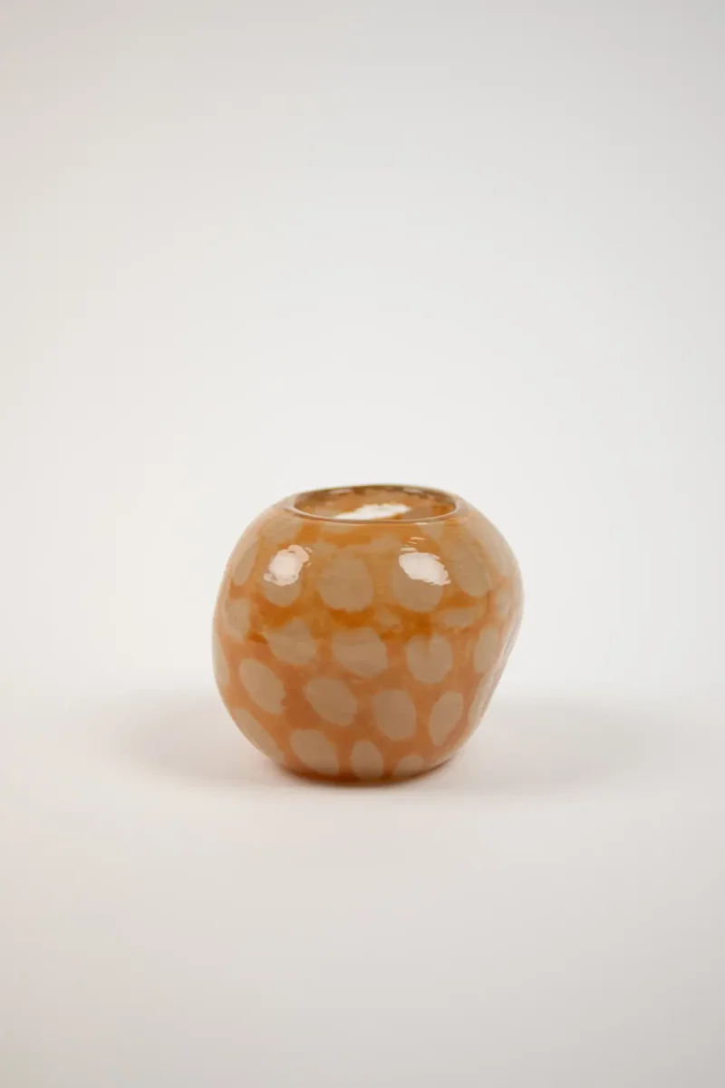 Rundad ljuslykta med en charmig prickig design. Passar bäst i kombination med 4-timmars värmeljus.