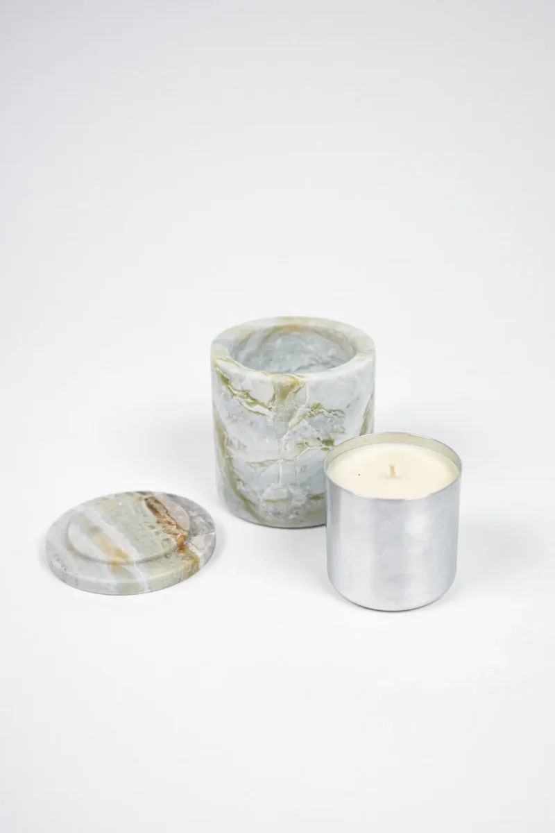 Doftljus med en härlig doft av blodapelsin och grapefrukt i en vacker marmorbehållare. Brinntid: ca 45 h. Marmorns naturliga ådring gör varje behållare unik i färg och utseende.