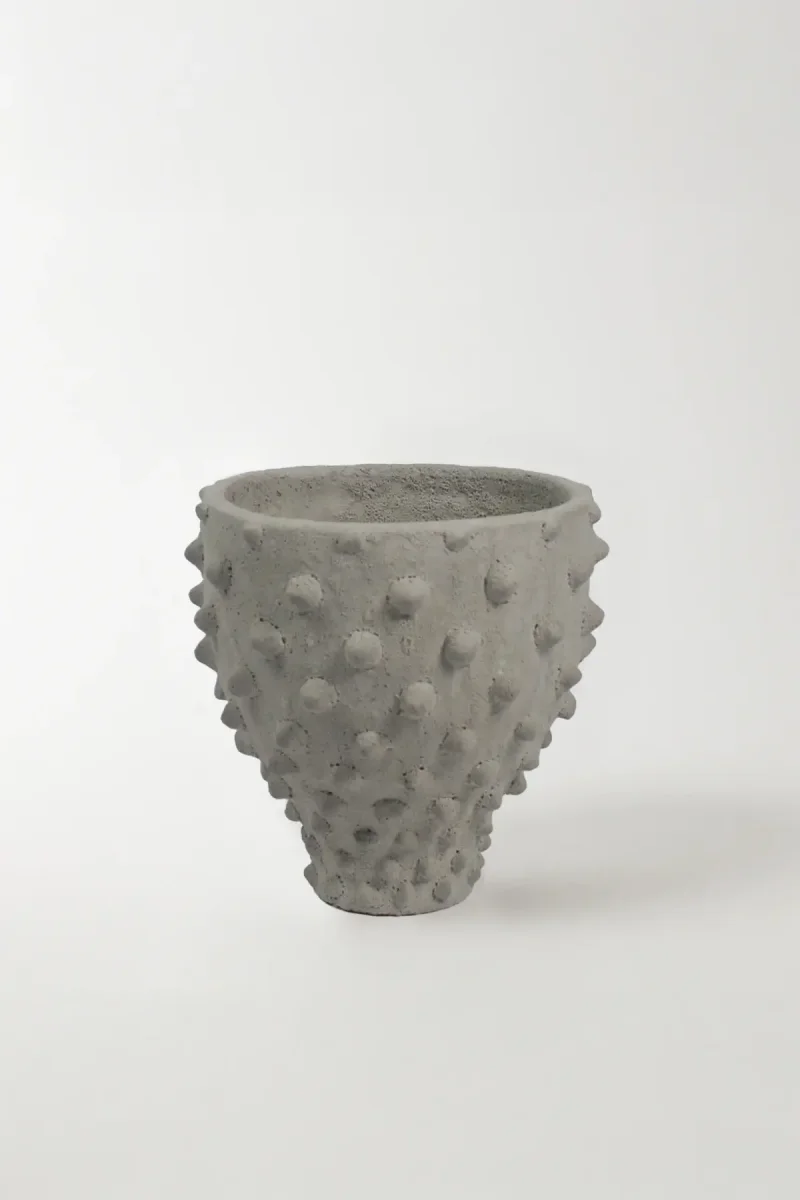 Handgjord kruka i keramik med ett kraftfullt uttryck och en ojämn, rustik yta – en iögonfallande detalj i hemmet.
