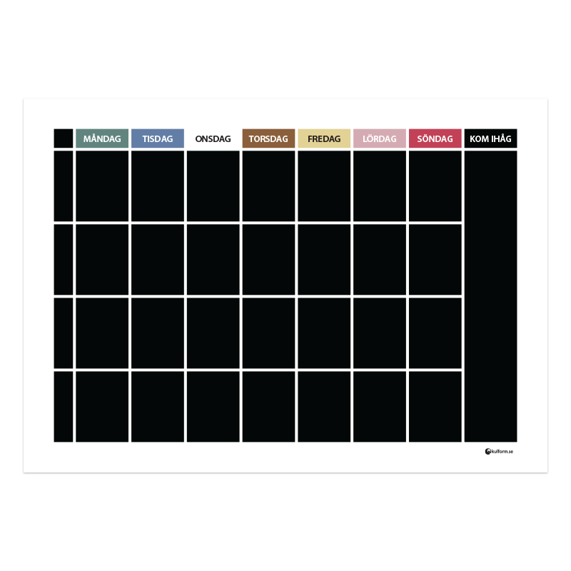 Bli först med att recensera ”Planeringstavla med veckodagsfärger och kom ihåg-fält, 4 rader (70×50 cm)”