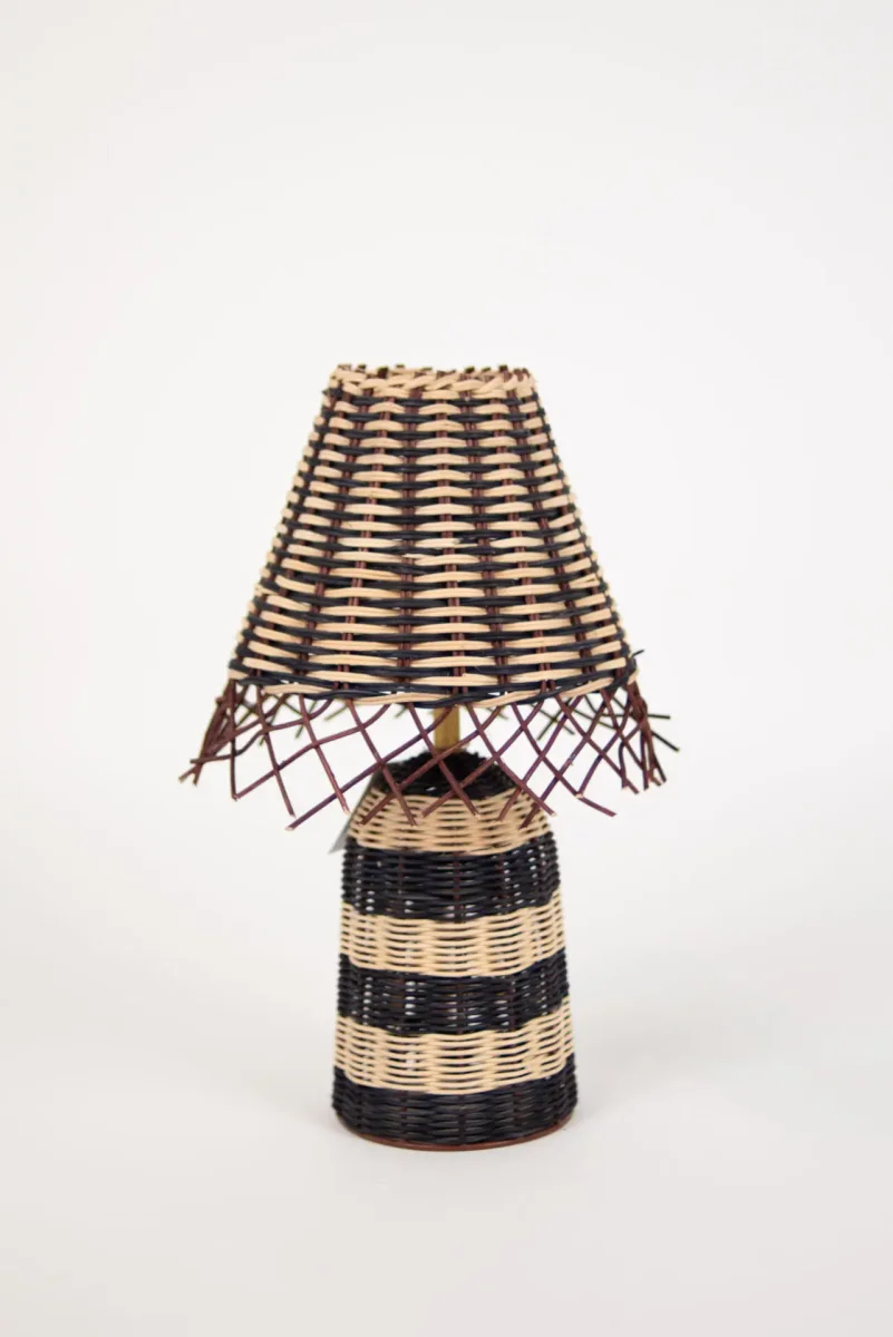 Bordslampa i naturfärgad och svart rotting, med råa, naturliga detaljer som ger lampan karaktär.