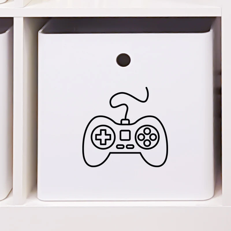 Spelkonsol, som dekor till leksakslådan. Märk boxen där tv-spel med tillbehör göms undan, med en tydlig symbol så är det lättare att hålla ordning! Märkningen på lådan är både praktisk och snygg och gör hela rummet mer personligt.