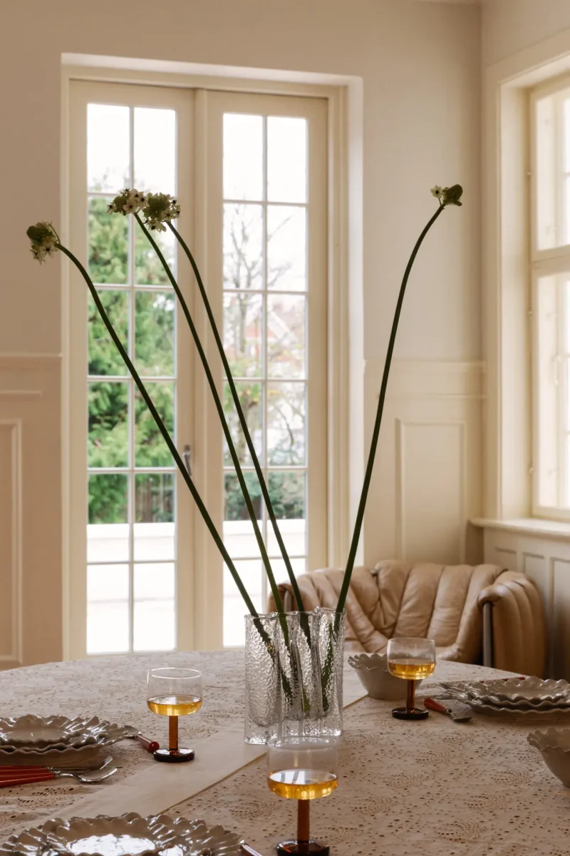 Elegant och lyxig vas i klarglas, med en design som låter varje blomma stå vackert och framhäva sin fulla prakt.