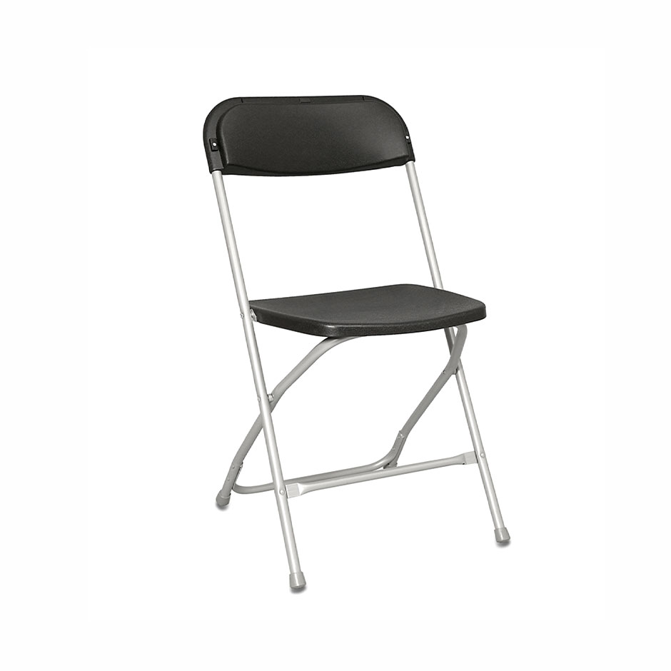 Svart fällstol i plast. Tål utomhusbruk Ryggens höjd: 79cm Sitsens bredd: 39cm Sitsens djup: 39cm Sitsens höjd: 43cm
