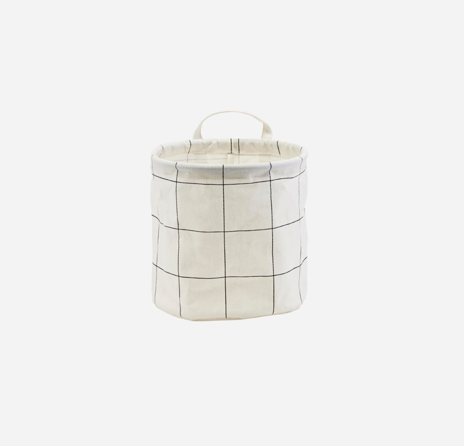 Liten förvaringspåse. Mjuk men kraftig med ett handtag och en hård ram upptill. Från House Doctor.