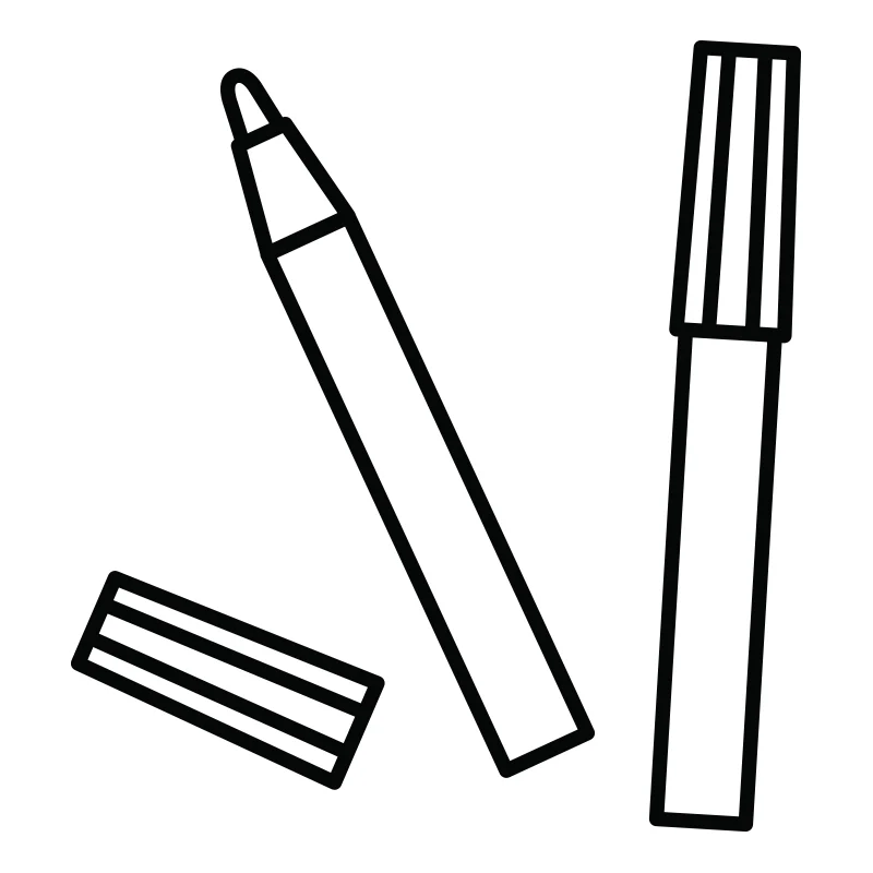 Stickern med tuschpennorna passar perfekt hemma hos alla som ritar med djärva linjer och starka färger!