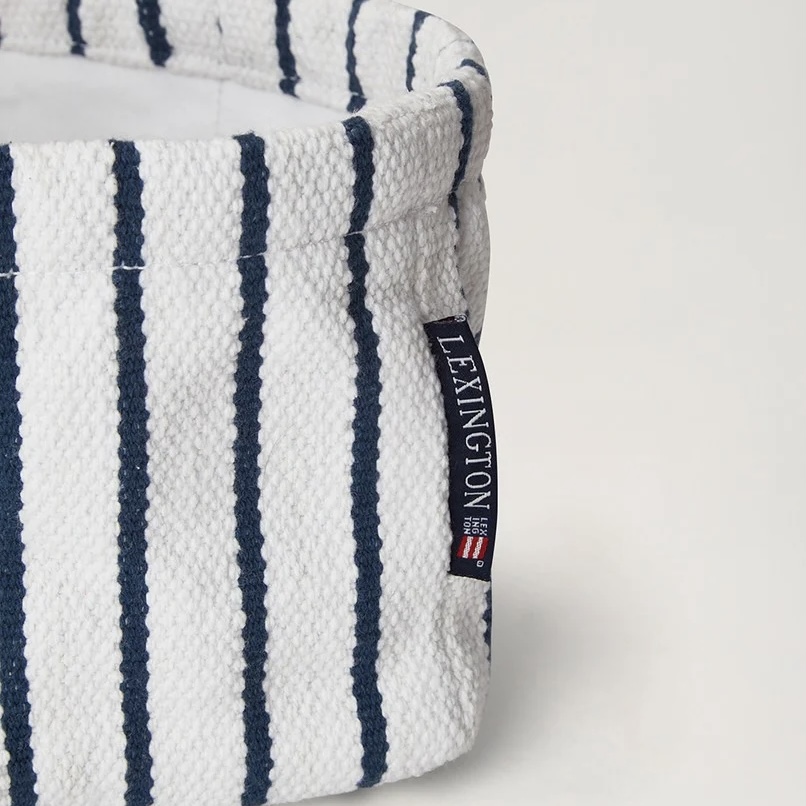 Liten randig tygkorg i tjockt canvastyg av återvunnen bomull.